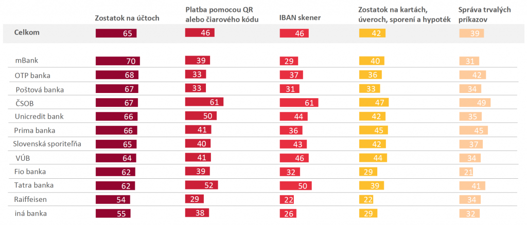 Vďaka vašim odpovediam sme mali možnosť dozvedieť sa viac o tom, čo používatelia očakávajú od svojich bánk. S analýzou dát nám pomáhala agentúra Median SK, vďaka ktorej sme zistili zaujímavé fakty. 24 % opýtaných uviedlo za svoju primárnu banku Tatra banku, kým v tomto ukazovateli je na druhom mieste je s 20 % Slovenská sporiteľňa. Spomedzi funkcií aplikácie respondenti najviac oceňujú zostatok na účtoch (65 %), platbu pomocou QR alebo čiarového kódu či IBAN skener.